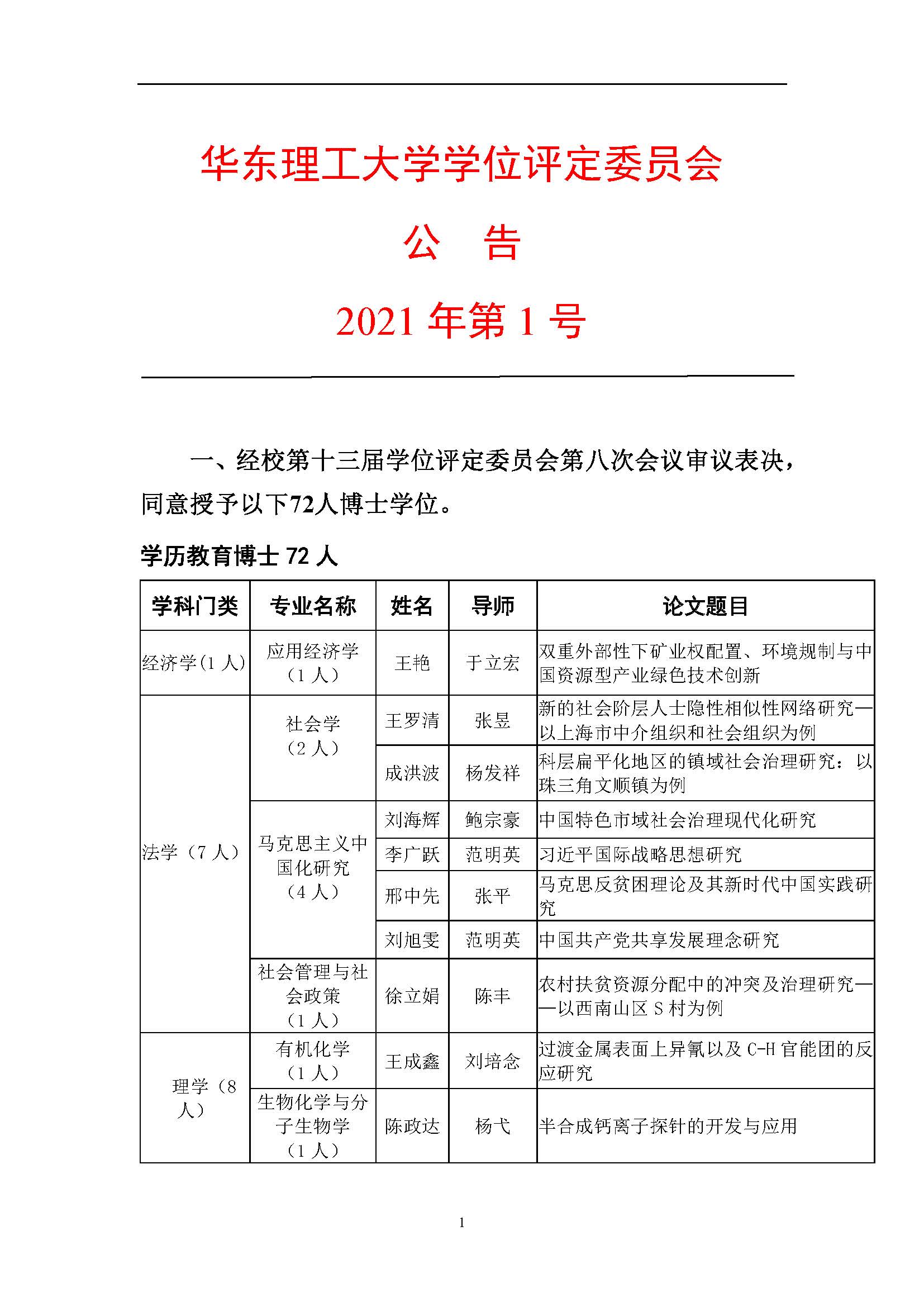 威尼斯wns144777第十三屆學位評定委員會第八次學位授予公告(2021年1號公告)