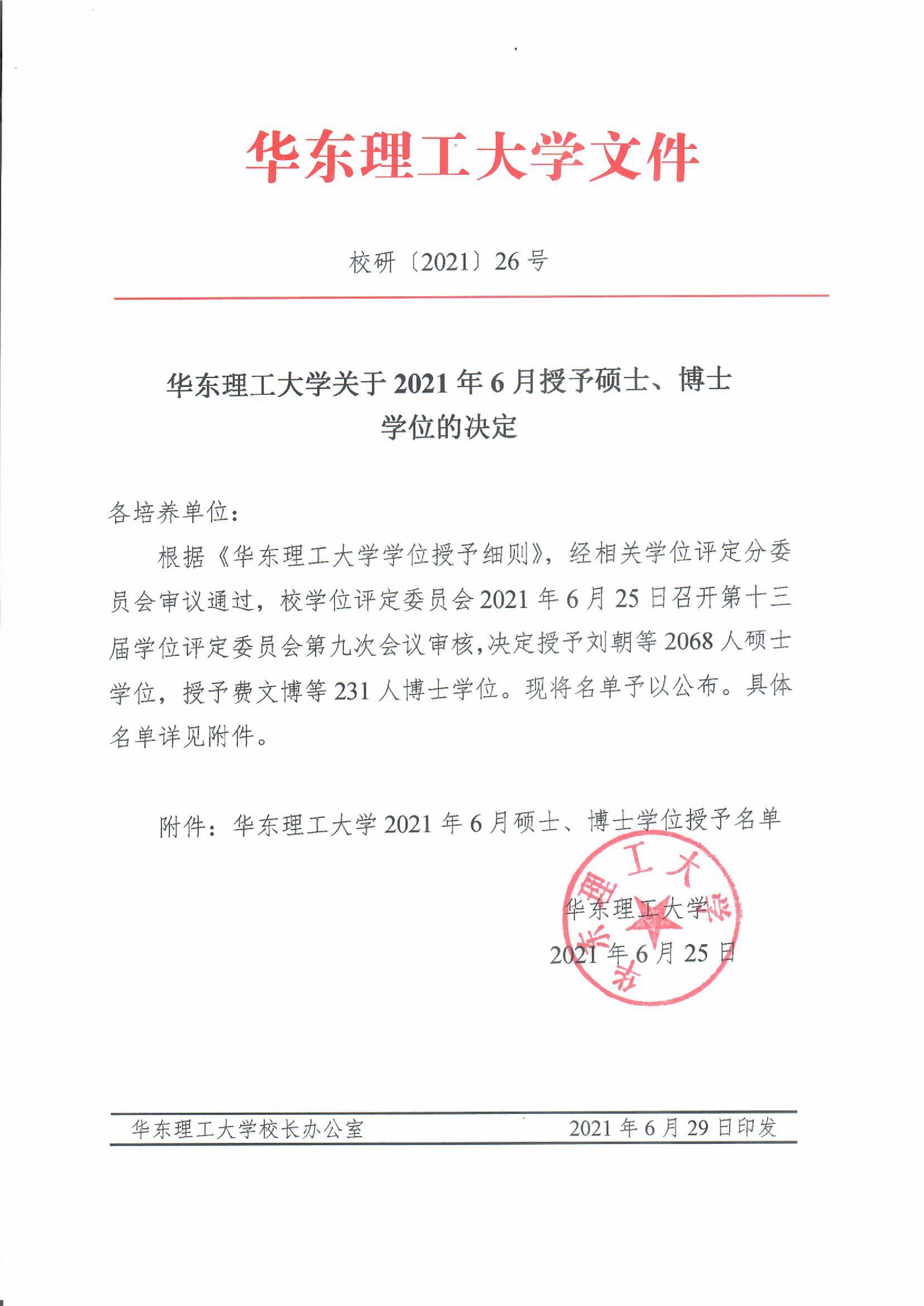 威尼斯wns144777關于2021年6月授予碩士、博士學位的決定