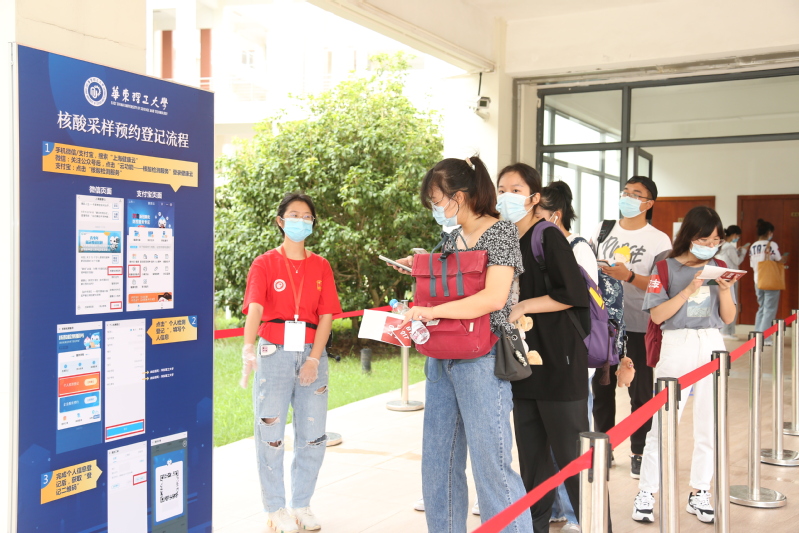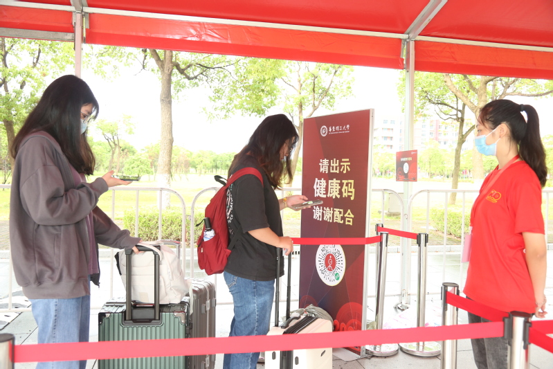 12日當天,校黨委書記杜慧芳,校長軒福貞,副校長胡寶國、王慧鋒、朱為宏來到徐匯校區(qū)和奉賢校區(qū)新生報到現場,詳細了解研究生新生報到流程、報到情況,慰問報到現場工作人員和志愿者,感謝他們?yōu)閷W校迎新工作做出的努力。隨后,在奉賢校區(qū)保衛(wèi)處監(jiān)控室察看監(jiān)控視頻,了解核酸檢測、學生休息、物資保障、檢測結果告知等工作安排。