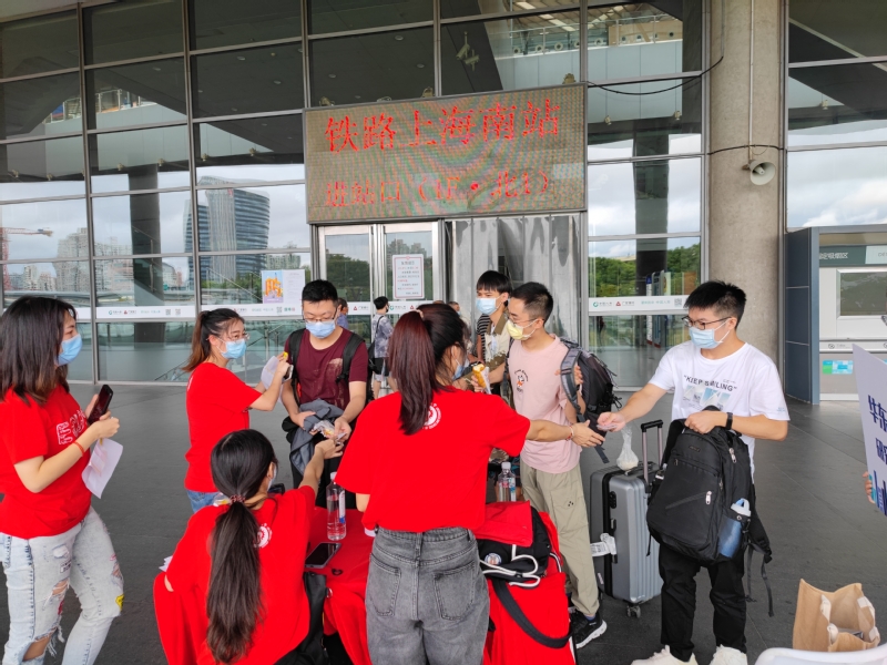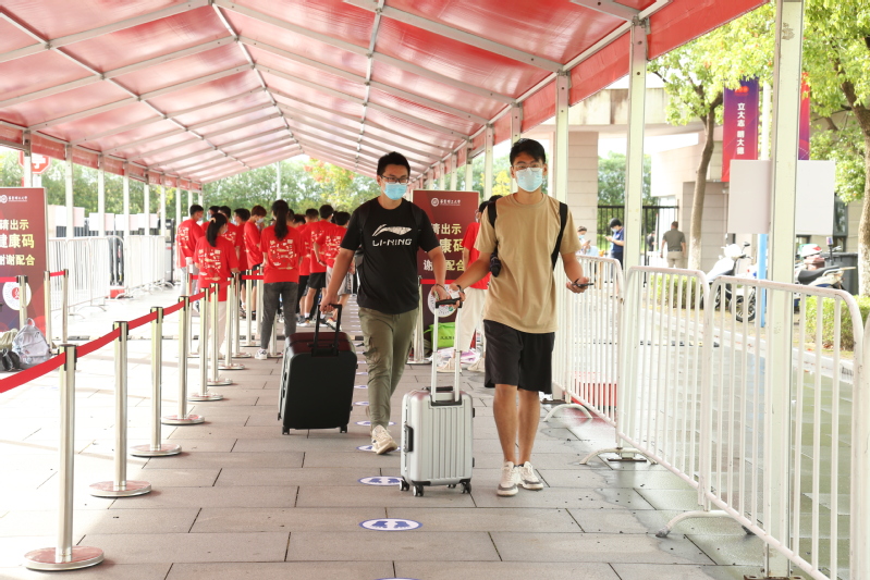迎新期間,學校在上海南站北廣場提供前往奉賢校區(qū)的接站服務,在校內設行李托運領取處并安排擺渡車幫助新生運送行李。學校特意安排了“愛心短駁車”,從入校處接送學生至校內核酸檢測點和宿舍,實現新生能夠直接“拎包入住”宿舍,用心用情織密織牢校園防疫網,為新生順利報到保駕護航。