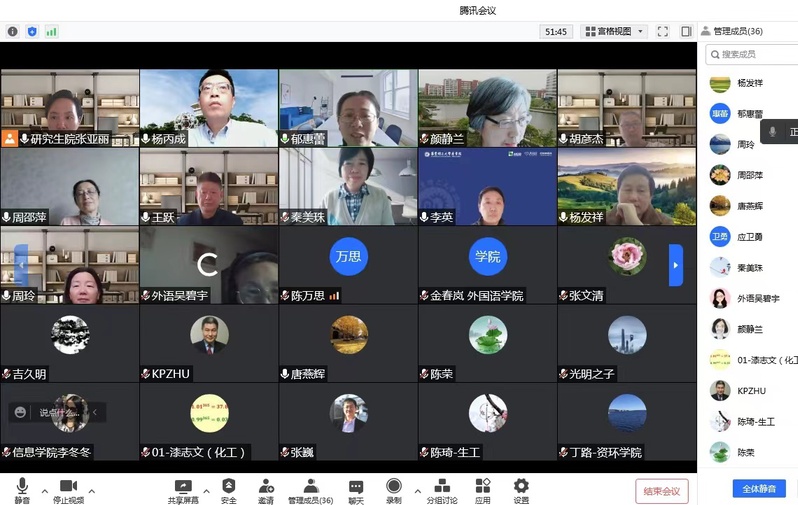 4月28日下午,研究生院通過騰訊會議組織召開2022年度研究生在線課程、案例庫項目立項評審會議。研究生院副院長郁惠蕾、研究生課程建設委員會主任顏靜蘭及12位專家參會。評審會議由顏靜蘭教授主持。?