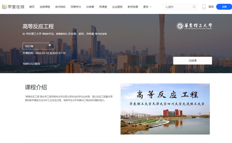 圖片說明:“高等反應工程”學堂在線平臺學習頁面