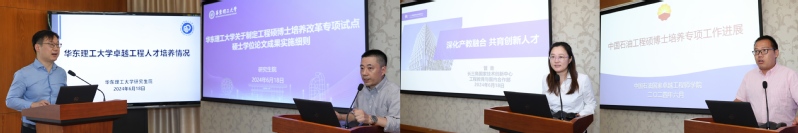 研究生院副院長陳嘯寅從選拔路徑、培養模式、保障條件以及校企協作要點等方面介紹了學校卓越工程人才培養情況,中國石油國家卓越工程師學院招生工作部主任陳振宏作題為《中國石油工程碩博士培養專項工作進展》的專題報告,長三角國家技術創新中心工程教育與國內合作部主任管音作題為《深化產教融合共育創新人才》專題報告,研究生院副院長劉濤詳細解讀了《威尼斯wns144777關于工程碩博士培養改革專項試點碩士學位論文成果的實施細則》。