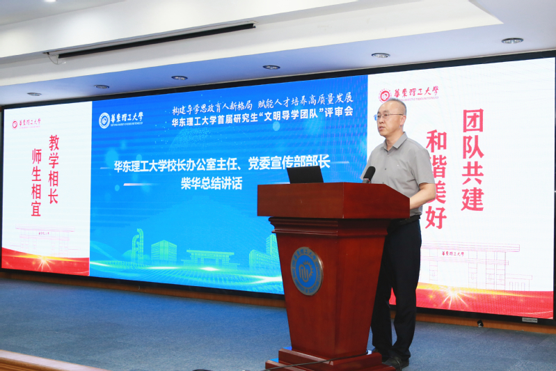 柴華在對本次活動進行總結時說,研究生“文明導學團隊”評選,作為創新研究生思想政治工作和進一步深化文明創建的工作嘗試,對于構建文明導學關系,探索共建“導學思政”和提升研究生培養成效具有重要意義。本次展示評審內容豐富、形式創新、精彩紛呈,是學校推進落實上海市建設習近平文化思想最佳實踐地行動方案、深化精神文明建設的重要舉措。希望各團隊繼續共筑和諧導學關系、濃郁導學文化氛圍、創新導學思政育人,為書寫“教育強國 華理有為”的奮進之筆展現時代擔當。