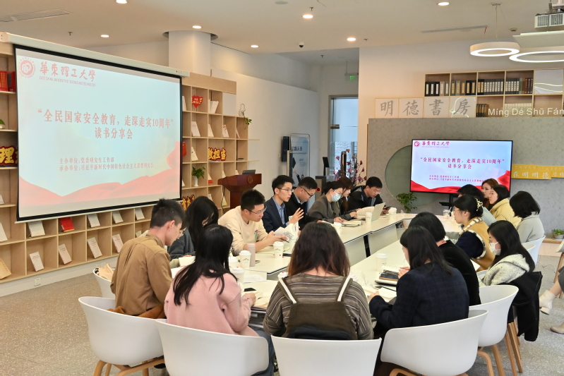 為深入貫徹落實習近平總書記關于加強國家安全教育的重要指示批示精神,深入貫徹落實總體國家安全觀,增強師生的國家安全意識,在第十個全民國家安全教育日即將來臨之際,由黨委研究生工作部指導,習近平新時代中國特色社會主義思想研究會(以下簡稱“習研會”)聯合馬克思主義學院團委舉辦的主題讀書分享會于4月3日下午在徐匯校區圖書館明德書房舉行。
