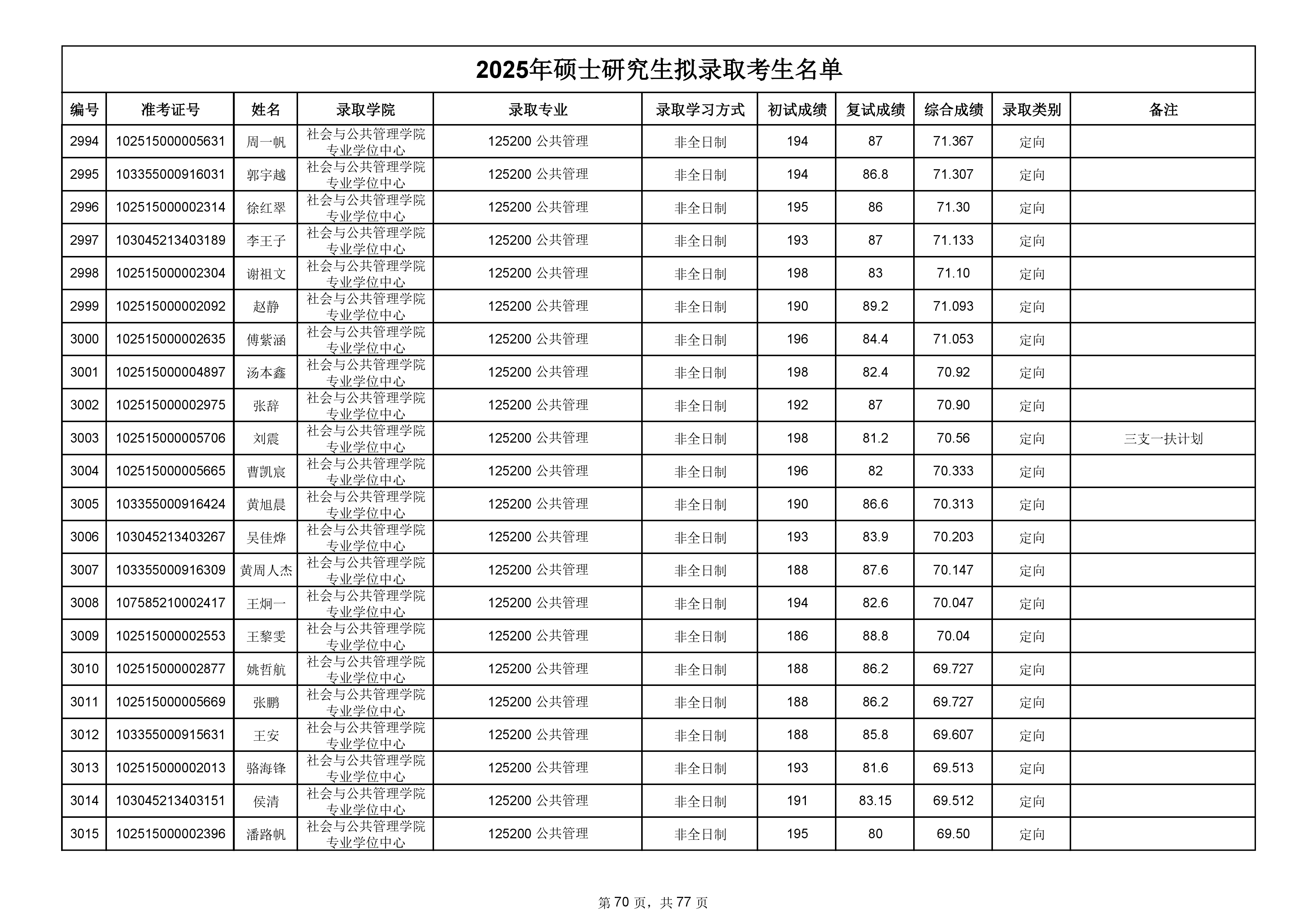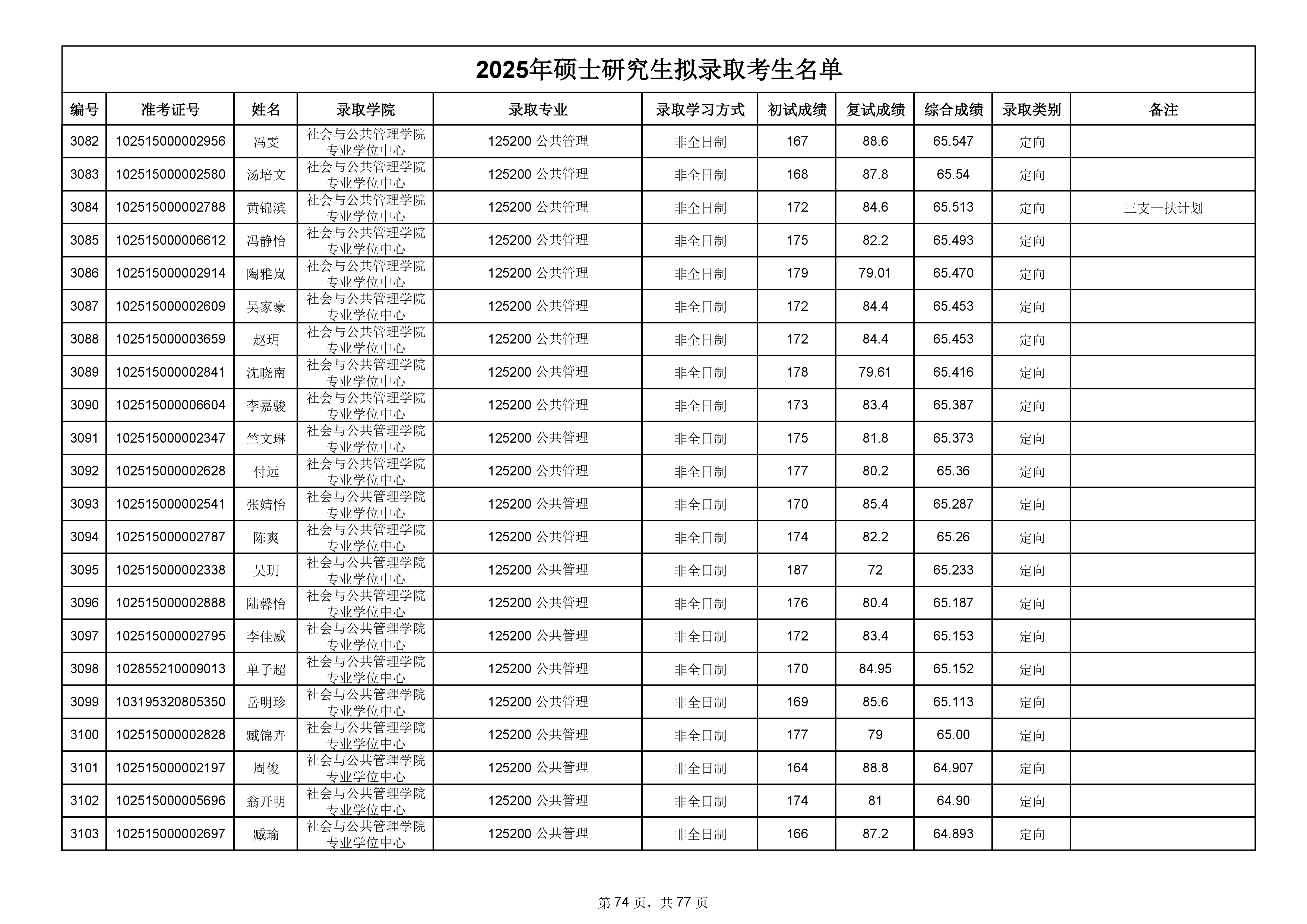 備注:此次公示名單為我校統考一志愿以及調劑擬錄取名單。