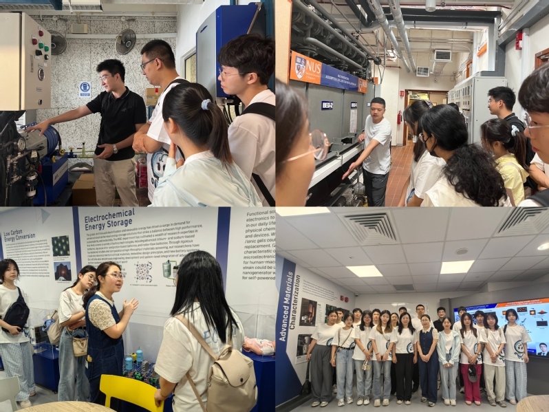 座談交流結(jié)束后,實(shí)踐團(tuán)參觀了College of Design and Engineering的多個(gè)相關(guān)課題組實(shí)驗(yàn)室。新加坡國立大學(xué)訪問學(xué)者、資環(huán)學(xué)院博士后高明向師生們介紹了Yang Wenming教授課題組的各類高精尖儀器裝備,CHUA Kian Jon教授課題組的博士后陳衛(wèi)東向師生們?cè)敿?xì)而生動(dòng)地介紹了熱電聯(lián)產(chǎn)燃?xì)廨啓C(jī)裝置的工作原理。正在新加坡國立大學(xué)聯(lián)合培養(yǎng)的資環(huán)學(xué)院博士生寶魯日帶領(lǐng)實(shí)踐團(tuán)師生參觀了所在的Qing Wang教授課題組實(shí)驗(yàn)室,講解了課題組在電化學(xué)能源轉(zhuǎn)換與存儲(chǔ),特別是其創(chuàng)新的氧化還原靶向技術(shù)從基礎(chǔ)到應(yīng)用的全面研究進(jìn)展與成就。