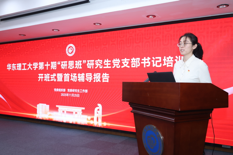 開班式上,沈海濤為研究生黨支部書記上了一節生動的黨課。黨課從深刻認識黨的二十屆四中全會召開的歷史方位和重大意義出發,引導同學們站在國家發展和個人成長相結合的角度,深刻理解“十五五”時期的重要地位,深刻把握高質量發展這一重要主題,深刻落實堅持黨的全面領導的戰略方針。他指出,要準確把握全會對一體推進教育科技人才發展的戰略部署,突出教育基礎性、先導性、全局性地位,強調科技自立自強的重要性,強化人才引領驅動的戰略思維。要聚焦全會提出的“十五五”期間科技自立自強的要求,全面增強自主創新能力。沈海濤號召廣大青年研究生要以高質量黨建推進研究生科研創新,不斷弘揚厚基礎、強實踐的華理學風,積極搶占科技發展制高點,努力提升國際勝任力,不斷為催生新質生產力、建設中國式現代化貢獻華理智慧。